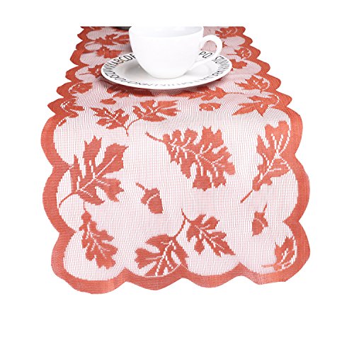 Wedding Lace Table Runner Receptions Decor, Harvest Maple Leaf Fall Wedding Ideas, Thanksgiving Table Decor 13x72" Rust Red