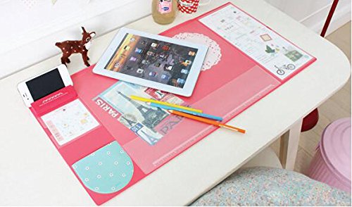 Large Size Mouse pad Anti-slip Desk Mouse Mat Waterproof Desk Protector Mat with Smartphone Stand, Pockets, Dividing Rule, Calendar and Pen Groove( Various Colors) (Pink cherry)