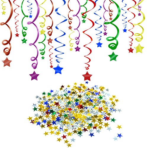 Multi Color Swirl decorations(24pcs)rainbow colored confetti(15 Gram) , Konsait Rainbow Foil Swirl Set Plastic Colorful Confetti Glitter for Birthday Party Wedding Shower Table Decor Twinkle Twinkle H