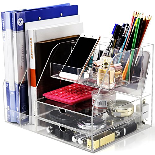DYCacrlic Multi-function Desk Organizer for Office/School/Home Accessories Organization,Acrylic,Clear Desk File Organizer Large Storage For Women Student Office Wokers